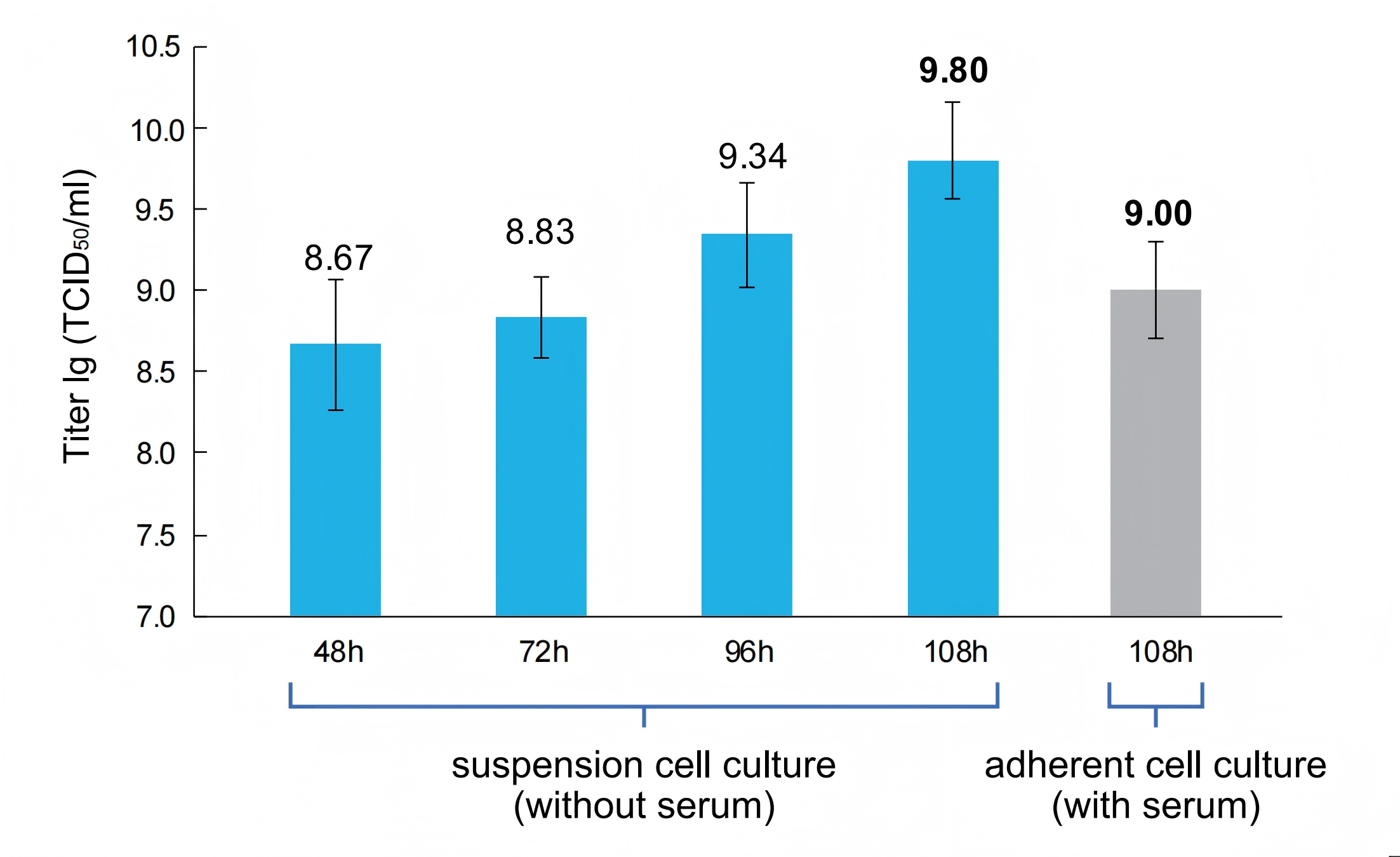 SF501 medium is an innovative serum-free medium developed independently by Shanghai BioEngine Sci-Tech Co., Ltd., which is serum-free, protein-free, and animal-derived component-free. It is the first medium for serum-free total suspension culture of LMH cells in China. It supports efficient acclimation of adherent LMH cells and high-density growth of suspension cells and provides a high-quality environment for efficient expression of avian adenovirus vaccines. SF501 is your ideal choice for large-scale industrial suspension culture of LMH cells: the suspension culture system provides you with a significant increase in production efficiency, while the serum-free culture system provides you with maximum process stability. Currently, it has been applied on a large scale in a number of avian adenovirus vaccine production projects.