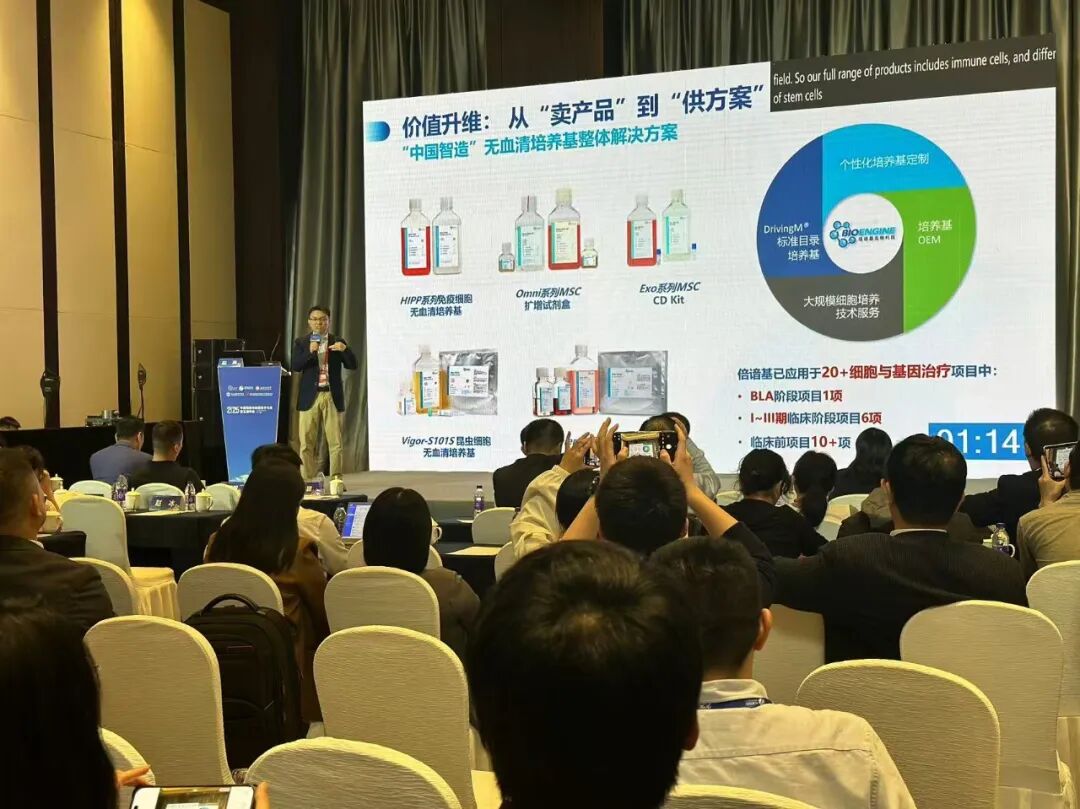 11 月 21 日,倍谙基资深副总裁、科创中心负责人赵亮博士,受邀在国产供应链分论坛发表主题演讲。他直指当前 CGT 产业 “进口依赖高、供应链不稳定” 痛点,并详细介绍倍谙基的解决方案:已推出覆盖HIPP系列免疫细胞无血清培养基、Omni 系列MSC 扩增培养基、Vigor 系列病毒载体昆虫细胞无血清培养基和Celer 系列293无血清培养基 的全场景产品矩阵,且已助力多个临床阶段项目。同时呼吁行业形成 “政府 + 企业 + 用户” 协同生态,推动供应链从 “单点突破” 迈向 “生态升维”。