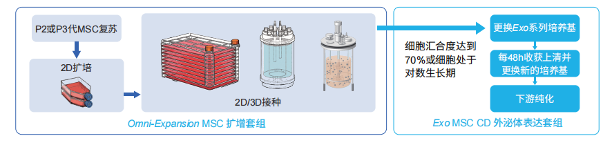 间充质基质 / 干细胞 (Mesenchymal stromal/stem cells, MSCs) 因其强大的免疫调节和组织再生能力,已成为细胞治疗领域中重要部分。众多研究表明 MSCs 的疗效很大程度上源于其旁分泌作用,其中细胞外囊泡 (EVs),尤其是外泌体 (Exosome) 被认为是 MSCs 与其靶细胞之间的关键传递介质。外泌体不仅具备天然的细胞间通讯功能、低免疫原性和穿过多种生物屏障等优势,还具有作为天然药物载体的能力,极具应用前景。 然而,传统的含血清培养方式受限于血清带来的批间差异、低产率及纯化挑战,难以满足药物开发的一致性、安全性和合规性严格要求。为此,倍谙基推出 Exo MSC CD 外泌体表达套组,是专为外泌体生产阶段的 MSC 培养设计的无血清、无异源和化学成分明确的培养体系,致力于为外泌体药物开发与规模化生产提供稳定高效的细胞培养解决方案。
